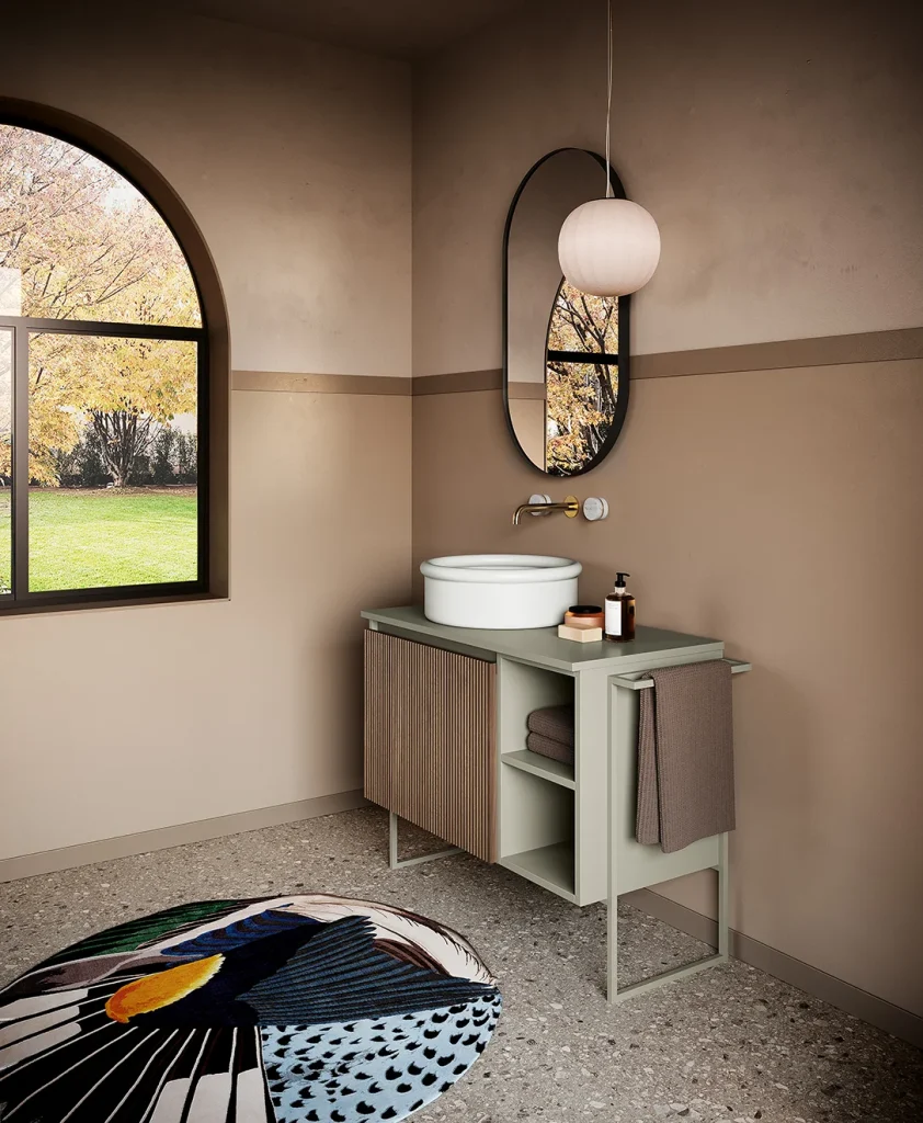 Vista la sua profondità abbiamo optato per un lavandino ovale d’appoggio,
