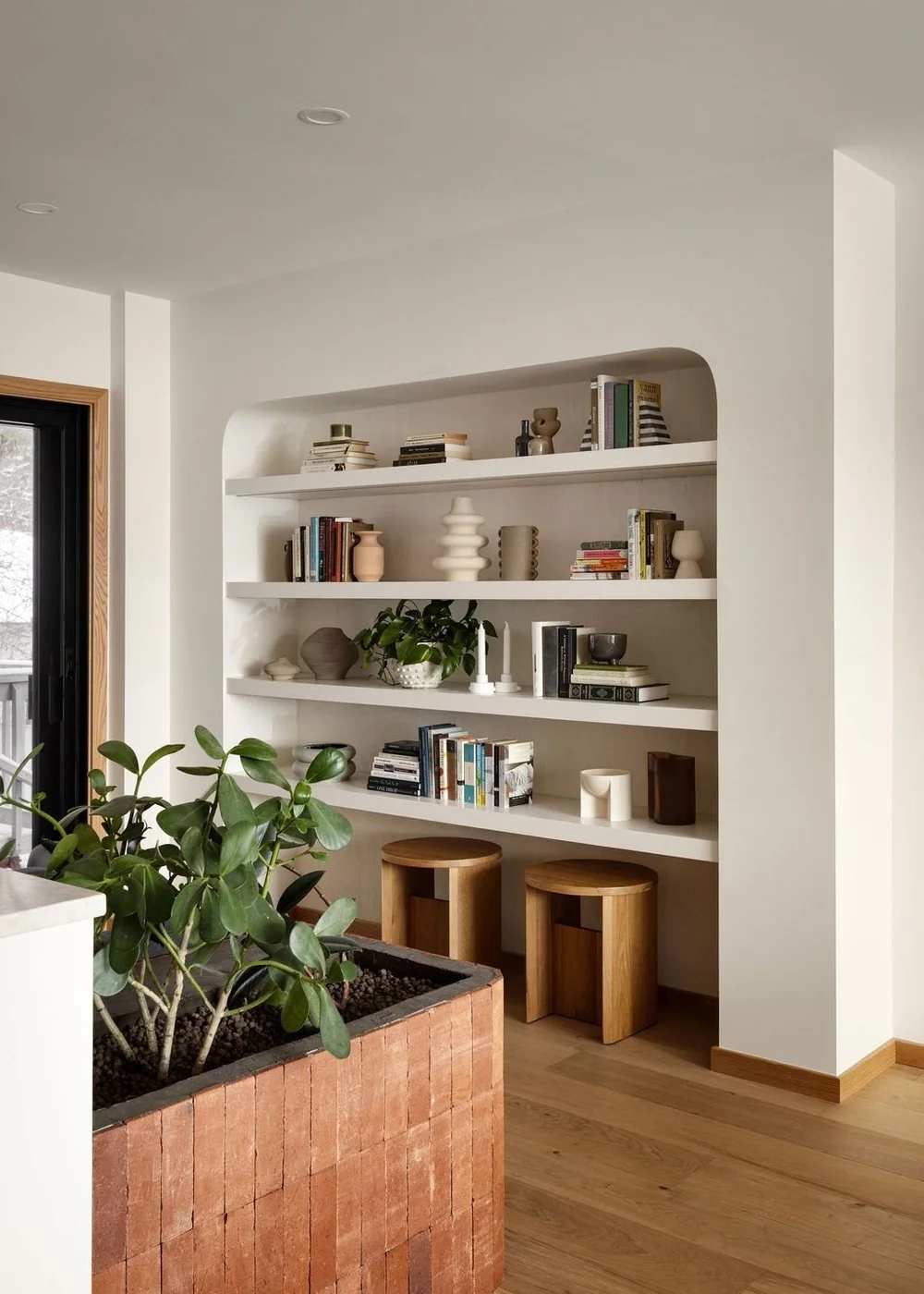 Sfruttarla per creare librerie simmetriche rende la parete equilibrata e scenografica.