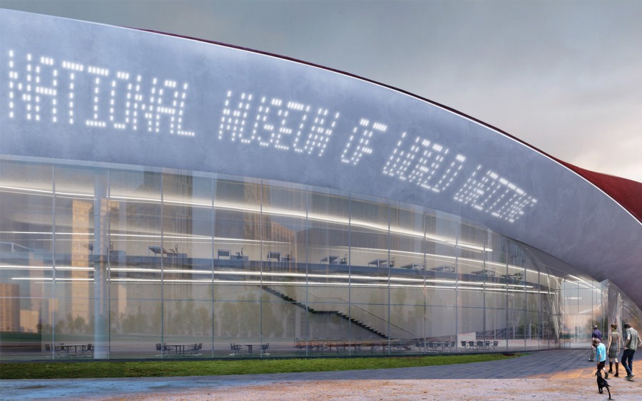 Il progetto, fonde insieme le due realtà, opposte, presenti nel luogo di intervento (natura e parco da un lato e densa urbanizzazione di grattacieli dall’altro) posizionando l’edificio come un elemento lineare sul confine dove le due realtà si “incontrano”. Il nuovo Museo Nazionale della Scrittura Mondiale è visto come un punto di unione, dove da un lato, l’orizzontalità e la forma dell’edificio abbracciano il parco, mentre, dall’altro, le direttrici del Museo entrano in relazione con la linearità verticale dei grattacieli circostanti.